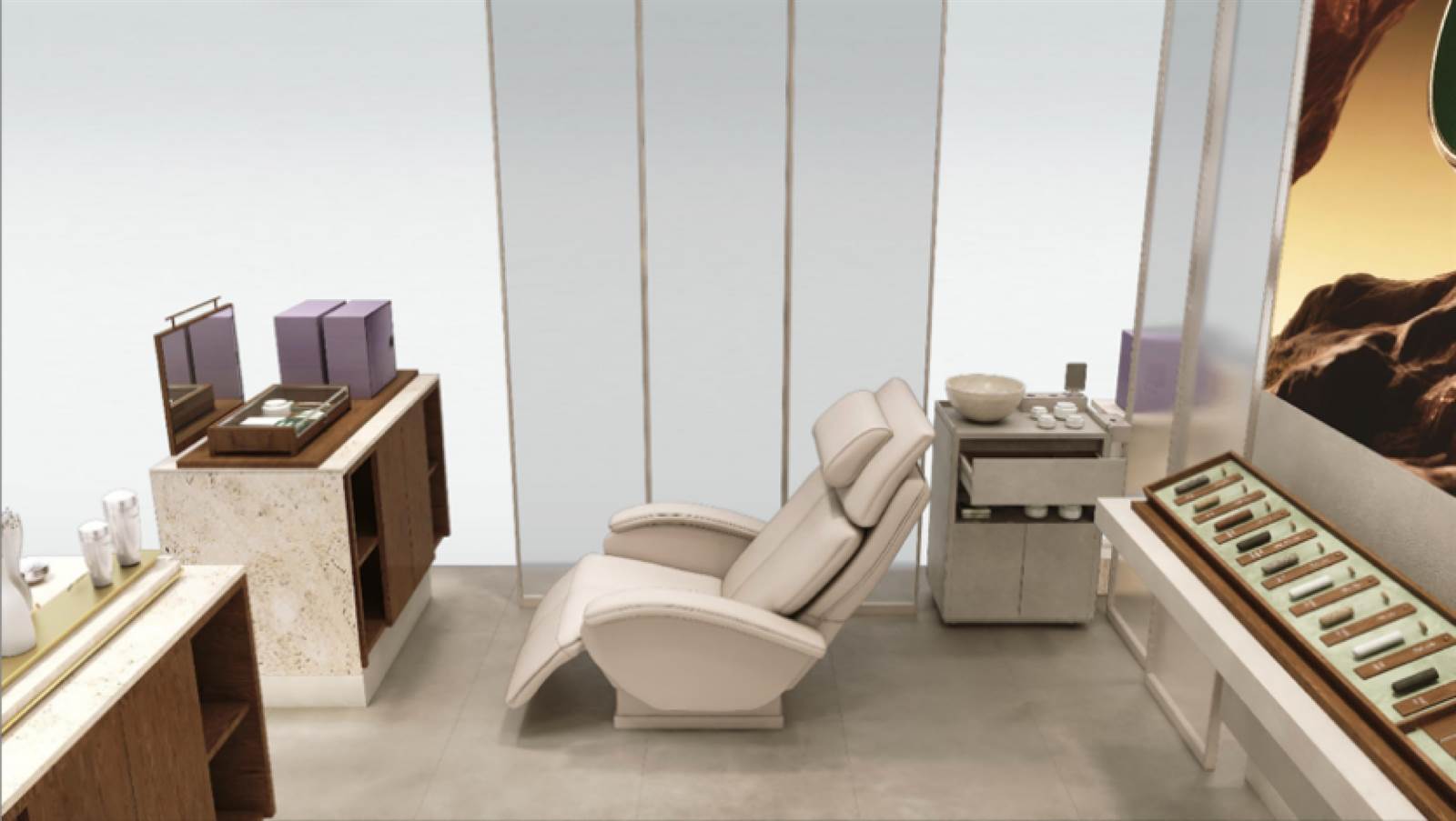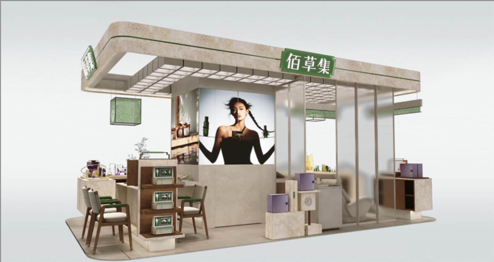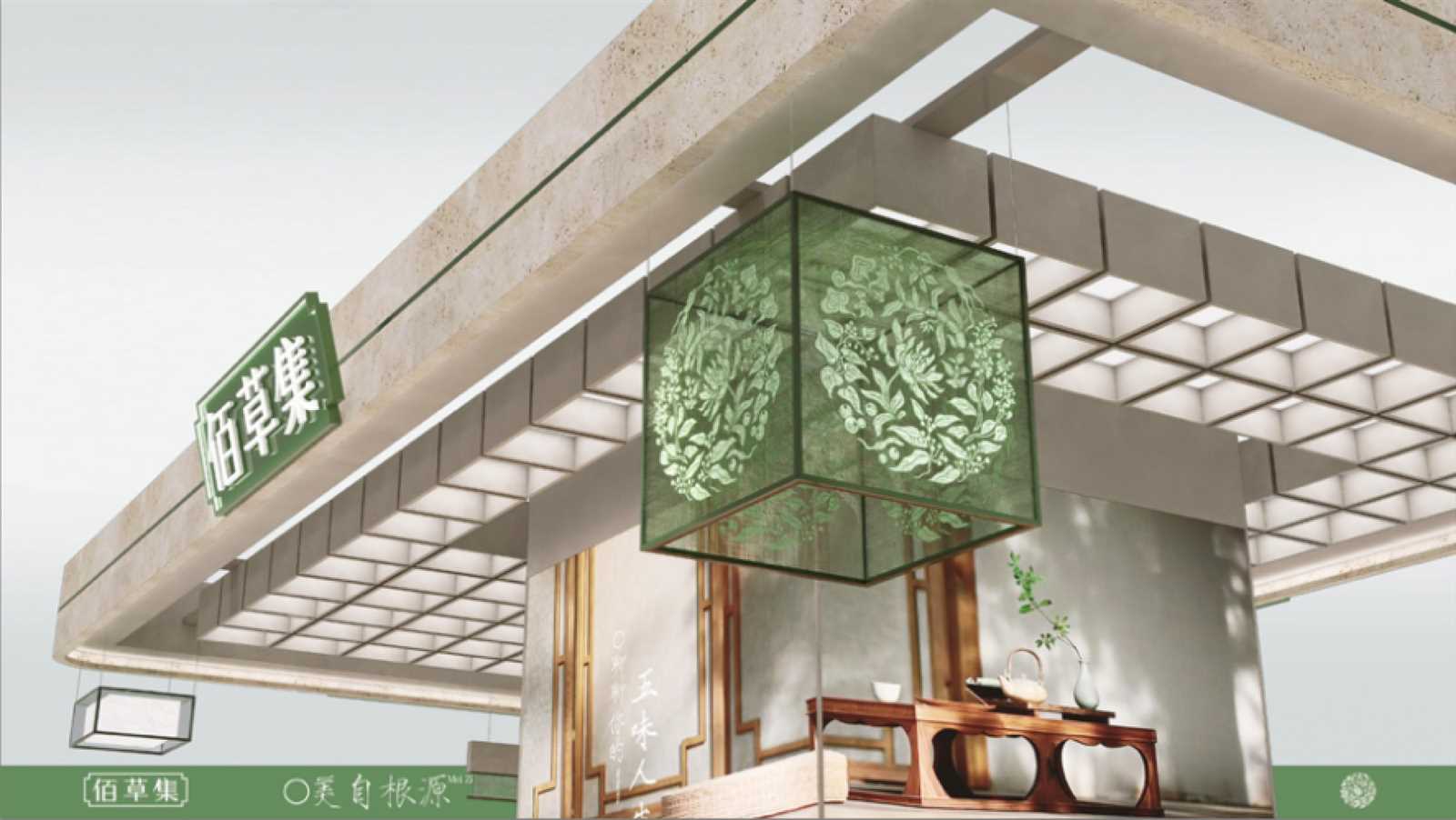 空间安排上,佰草集以中医文明为原点,将古代药铺的“百子柜”元素转化为新颖通透的摆列编造。洞石材质的利用延续了古代石臼研磨药材的质感,照应“古石白捣药”的源生意象;门头安排提取自中药铺木质牌匾的形造,以精粹线条传达稳健与相信。墙面以“主视觉团花贯串方”为视觉中枢,将本草纹样与古典图案融为一体,修建拥有辨识度的东方美学后台。